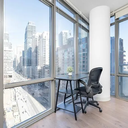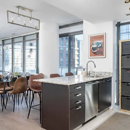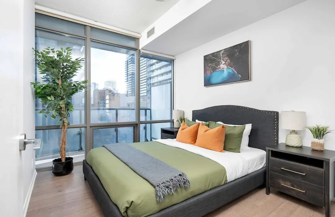 شقة Large 2Br On Bay Street 4 Beds With Balcony بمساحة 93 مترًا مربعًا تقع مباشرة فى وسط تورونتو، على بُعد 10 دقائق تقريبًا بالسيارة من حي ديستيليري. يمكن للضيوف الإقامة في الشقة الّتي تقع بالقرب نسبيًا من جامعة تورنتو، ويمكن للضيوف الاسترخاء على الفناء المشمس.